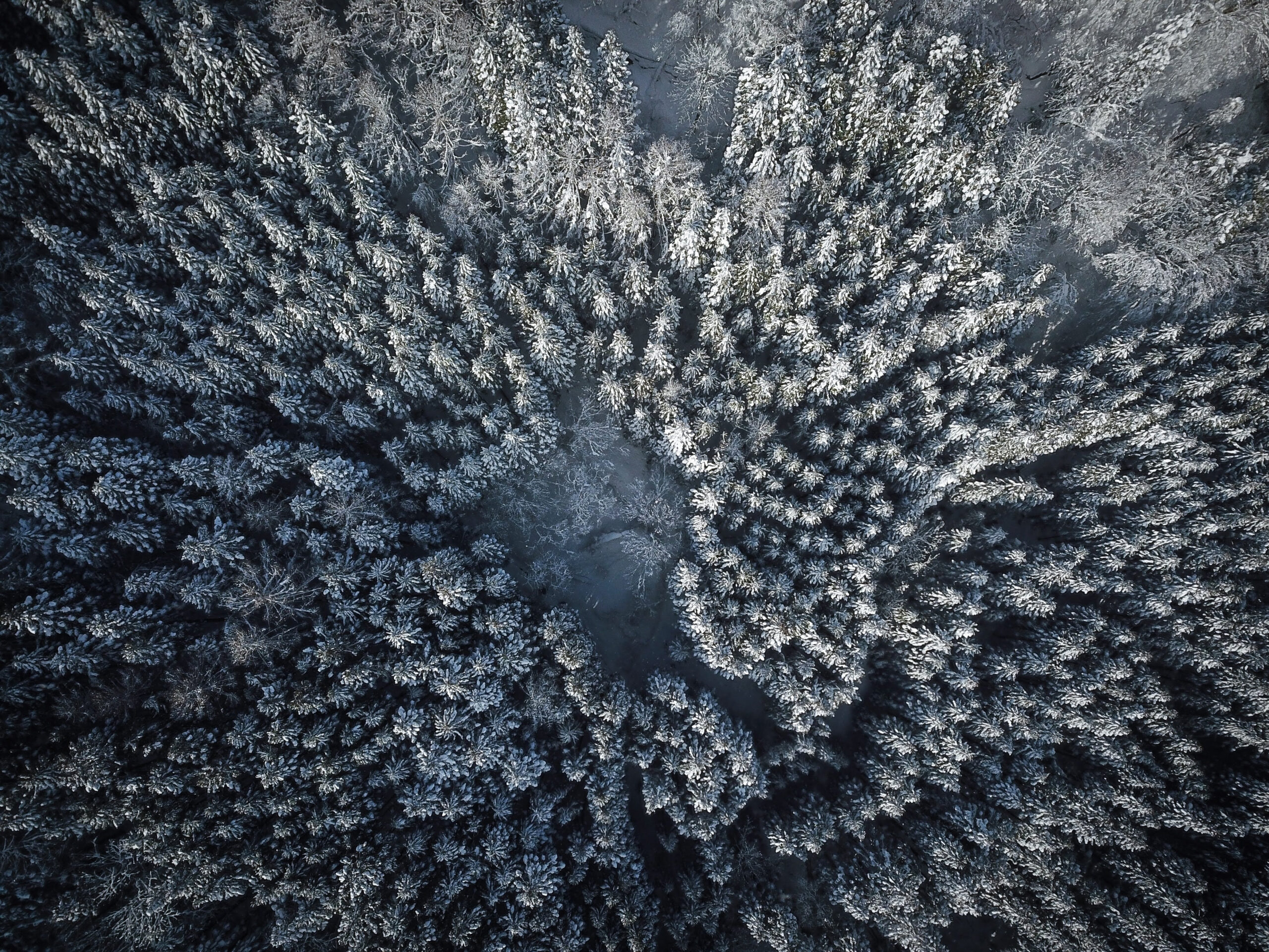 雪に覆われた景色は陰影がはっきりし、ドローンならではの俯瞰の美しさが際立ちます。