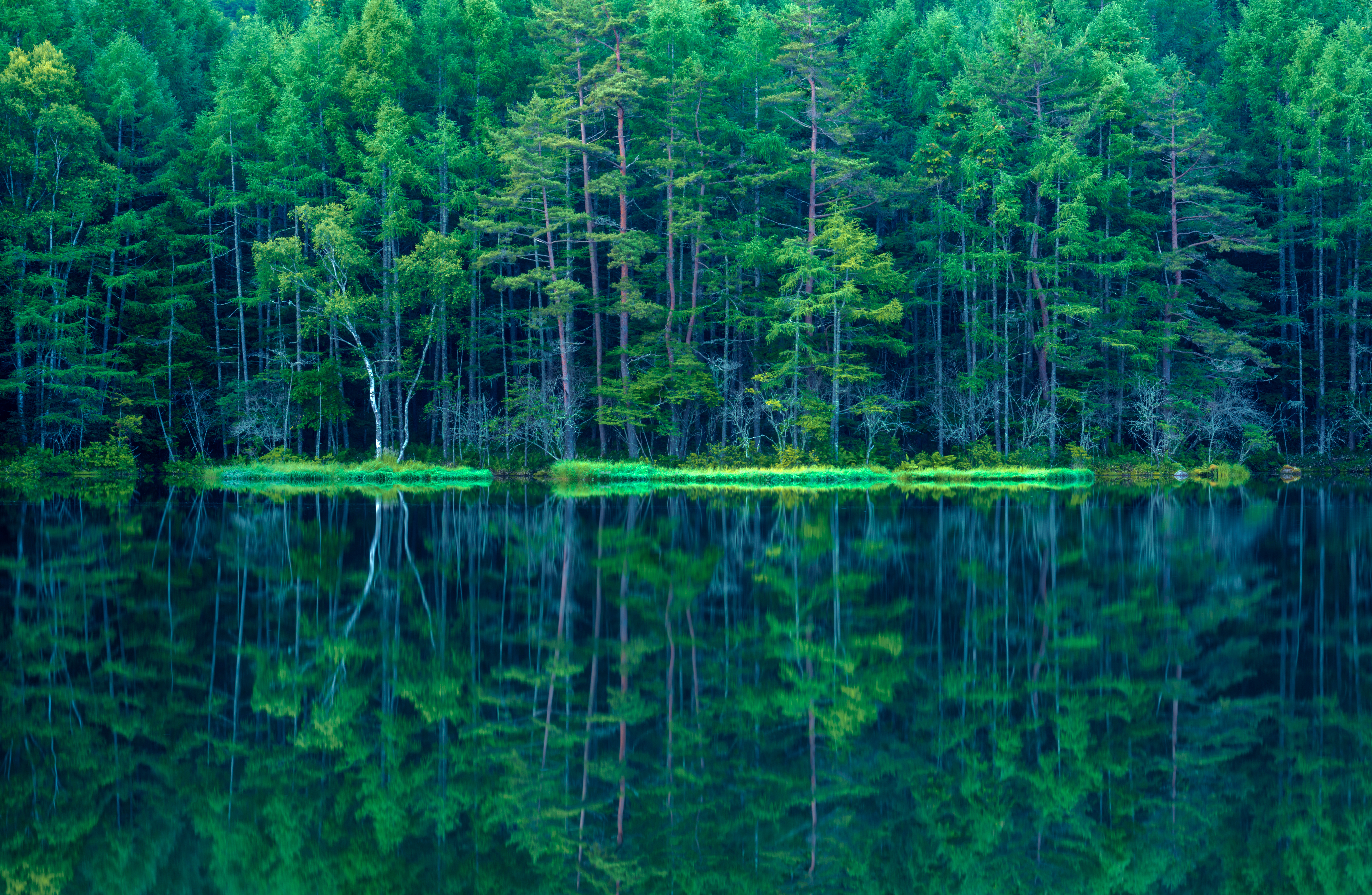御射鹿池のの水面リフレクションなど、光の表現が映えるロケ地